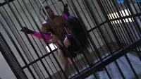 In this erotic fantasy film titled One of Them Swung On a Cage, the viewer is introduced to an exciting and kinky sex scene that revolves around the themes of submission, discipline, and roleplay.The woman, who must be over 18 years old, is dressed in a tight, sultry uniform, accentuating her curves.She is clad in fishnets and stockings, complemented by a collar and leash, indicating her obedience to her captors desires.The scene takes place within a cage hanging from the ceiling.As she swings in the air, completely at the mercy of her restraints, the man enters the room.Dressed in a strict, dominating outfit, he takes control over the situation with a stern gaze and confident demeanor.The viewer is drawn into their erotic dance of power dynamics, as the womans body contorts and adjusts to the swinging motion.The sex scene becomes more explicit as the man starts undressing her, tearing away her uniform and fishnets to reveal her alluring body beneath.He then takes charge, guiding the womans mouth to his throbbing cock, where she enthusiastically performs oral.The pleasure of his blowjob combined with the swinging motion of the cage sends shivers down his spine as he imagines her vulnerability and obedience in this situation.As their sex scene progresses, they both explore each others fantasies of submission and domination, embracing the intensity of their desires.They transition to more passionate positions such as fucking and riding, with the womans cunt gripping his cock, providing an intense experience for him while her clit aches with pleasure.Their lovemaking reaches its climax when she gives in to her roleplay fantasies, begging for mercy and punishment.As he punishes her, using nets and other restraints, their passion transcends into the realm of fetishes and kinks, pushing their boundaries even further.This leads them to the point of no return, as the man finally unleashes his pentup energy in a powerful cumshot, filling her cunt with his warm sperm.This erotic fantasy film titled One of Them Swung On a Cage is an ode to the desires hidden within all of us.It allows viewers to indulge in their wildest fantasies as they watch this captivating, sensual display, immersing them in the world of submission, domination, and erotic roleplay.